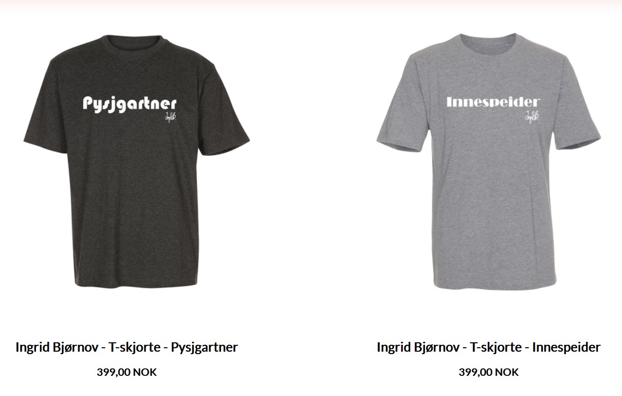 Er du Team Pysjgarner eller Team Innespeider? Valget et ditt… Nå er de nye tskjortene på plass i nettbutikken, i to farger og ulike størrelser. Se: https://www.ingridb.no/nettbutikk-ingrid-bj
